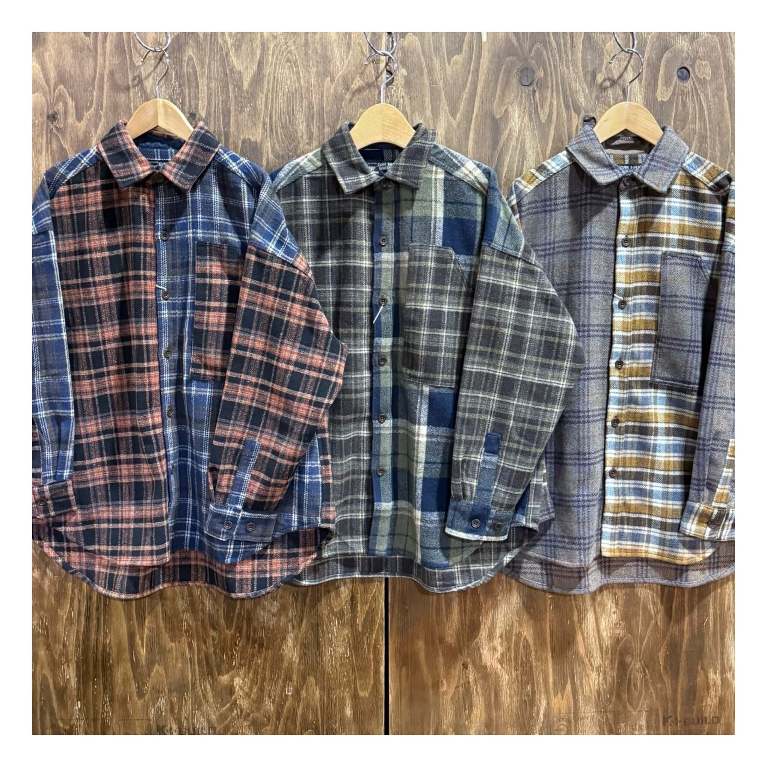 温かみのあるネルチェックを組み合わせたビッグシャツ🌿