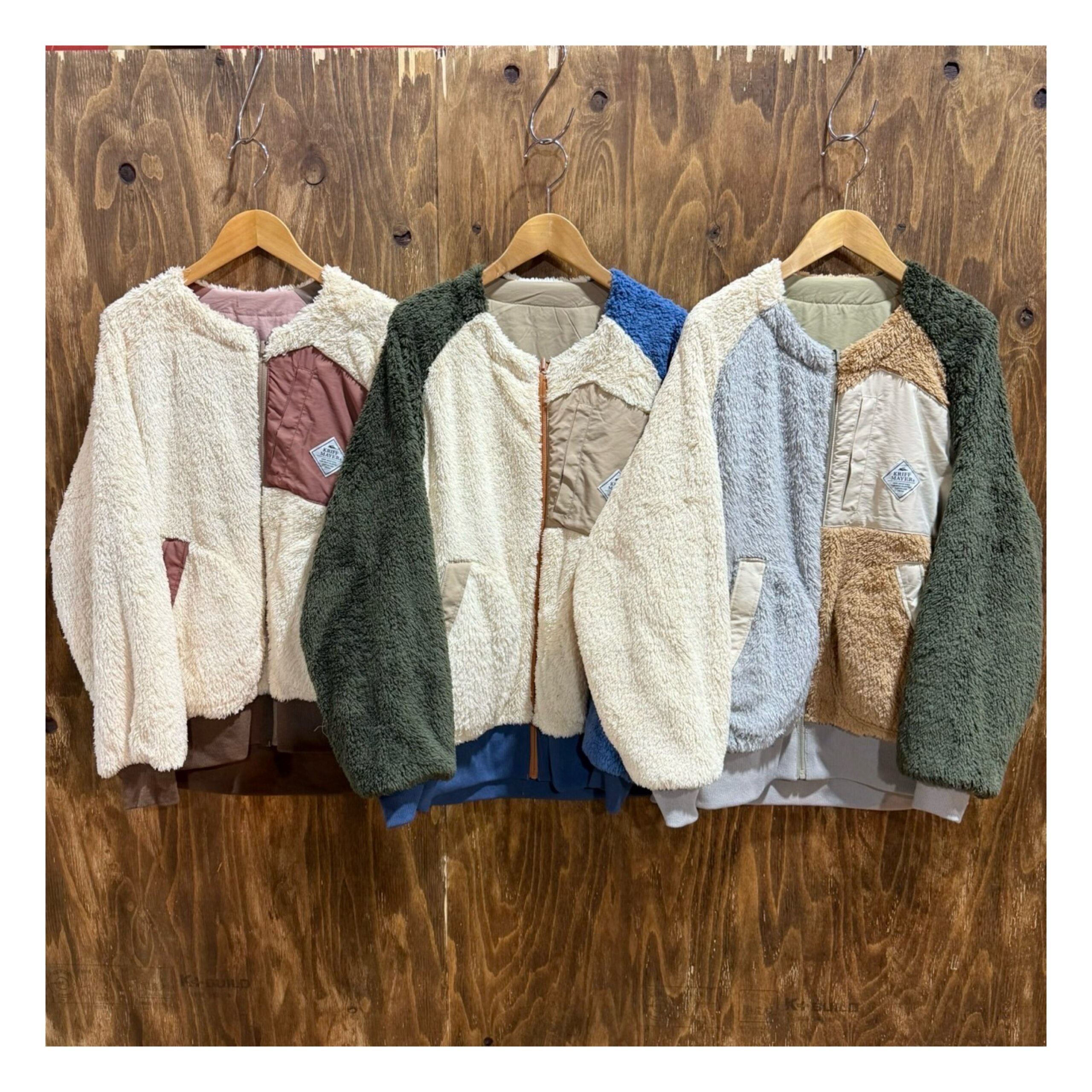 表面はタフタ素材に、胸のロゴ刺しゅうをアクセントにしたシンプルデザインで、裏面は、ふわもこが可愛いシャギーフリースを使用!