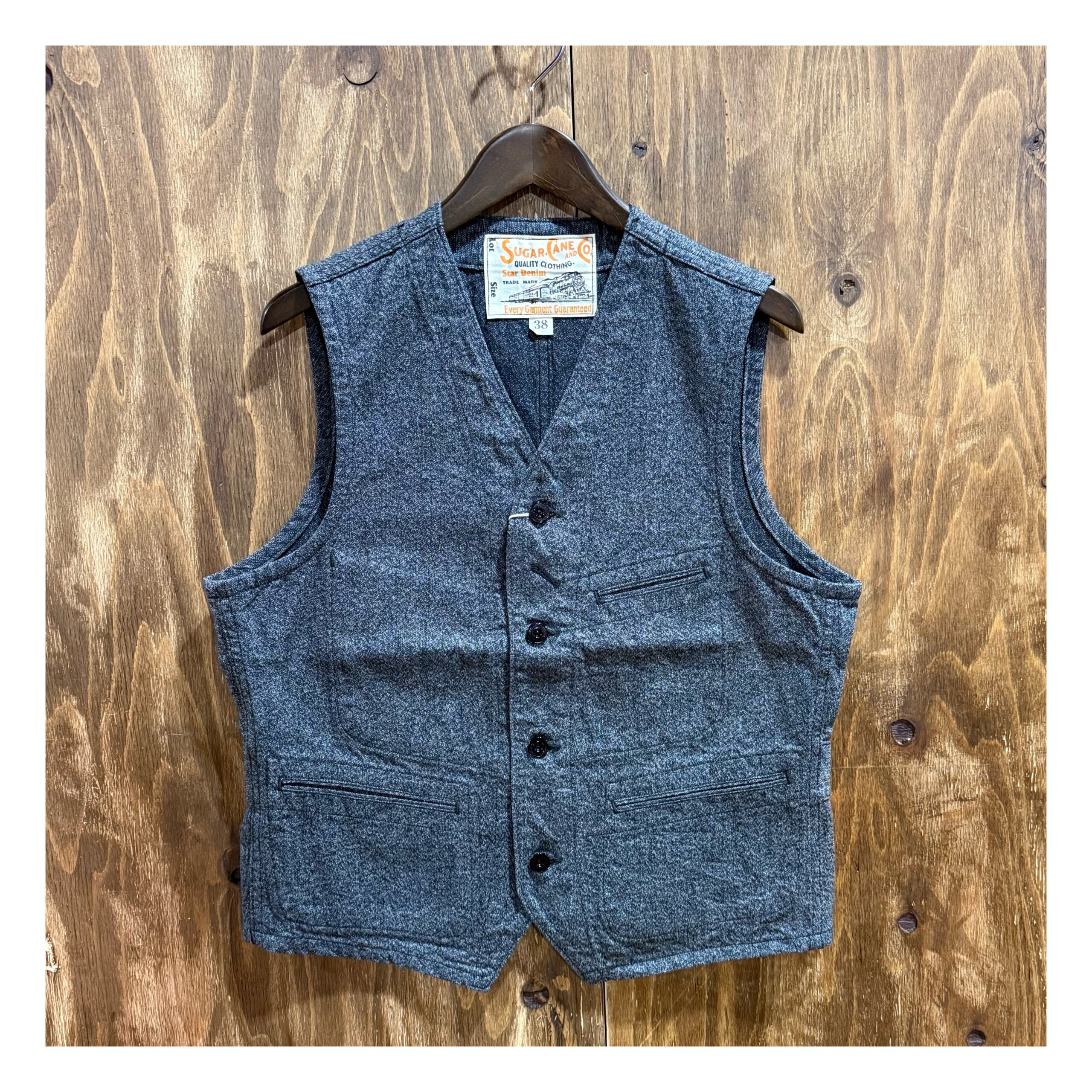 やや濃淡の強い9オンスのブラックコバート生地で仕立てたワークベスト✨️