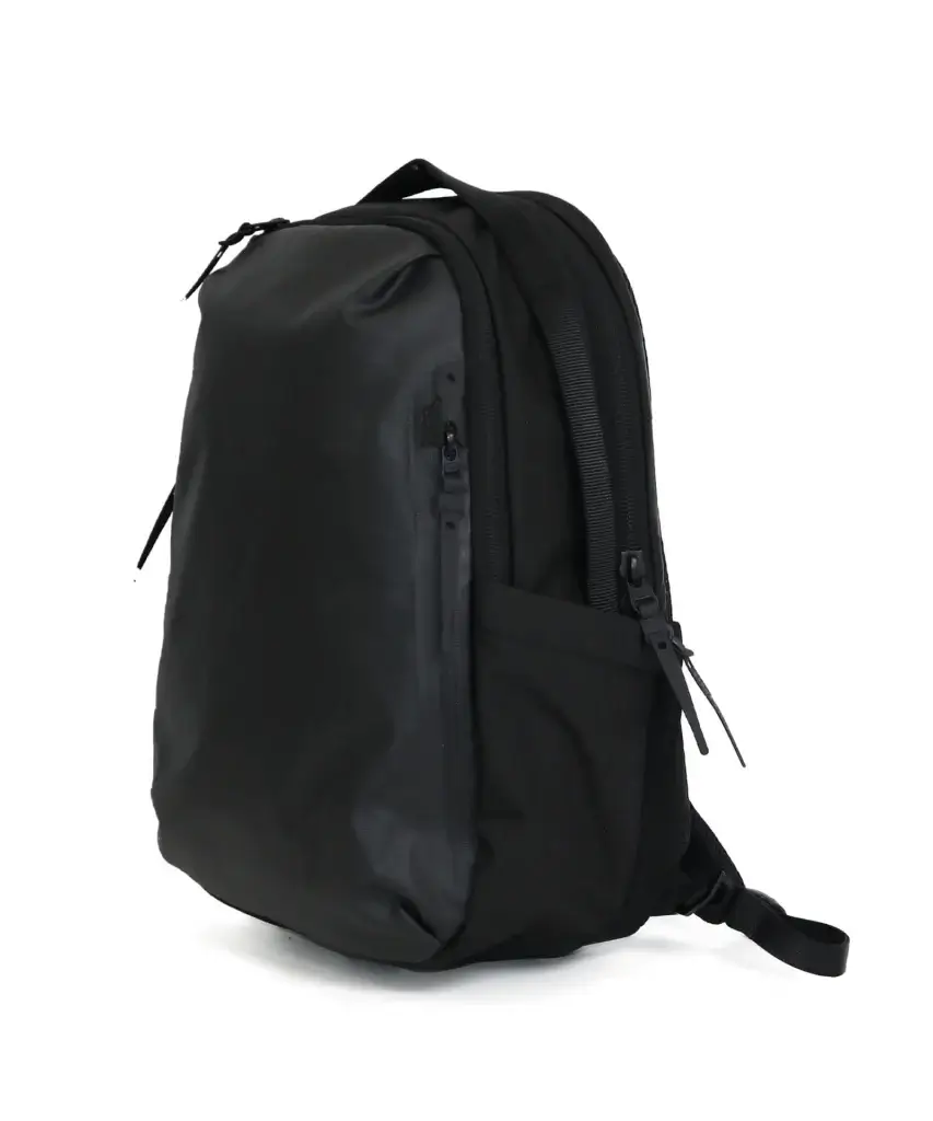 RECTANGLE 2WAY PACK は、接着されたYKKアクアガードジッパー収納ポケットが 2つ付いたビジネスカジュアル通勤用バックパックです。