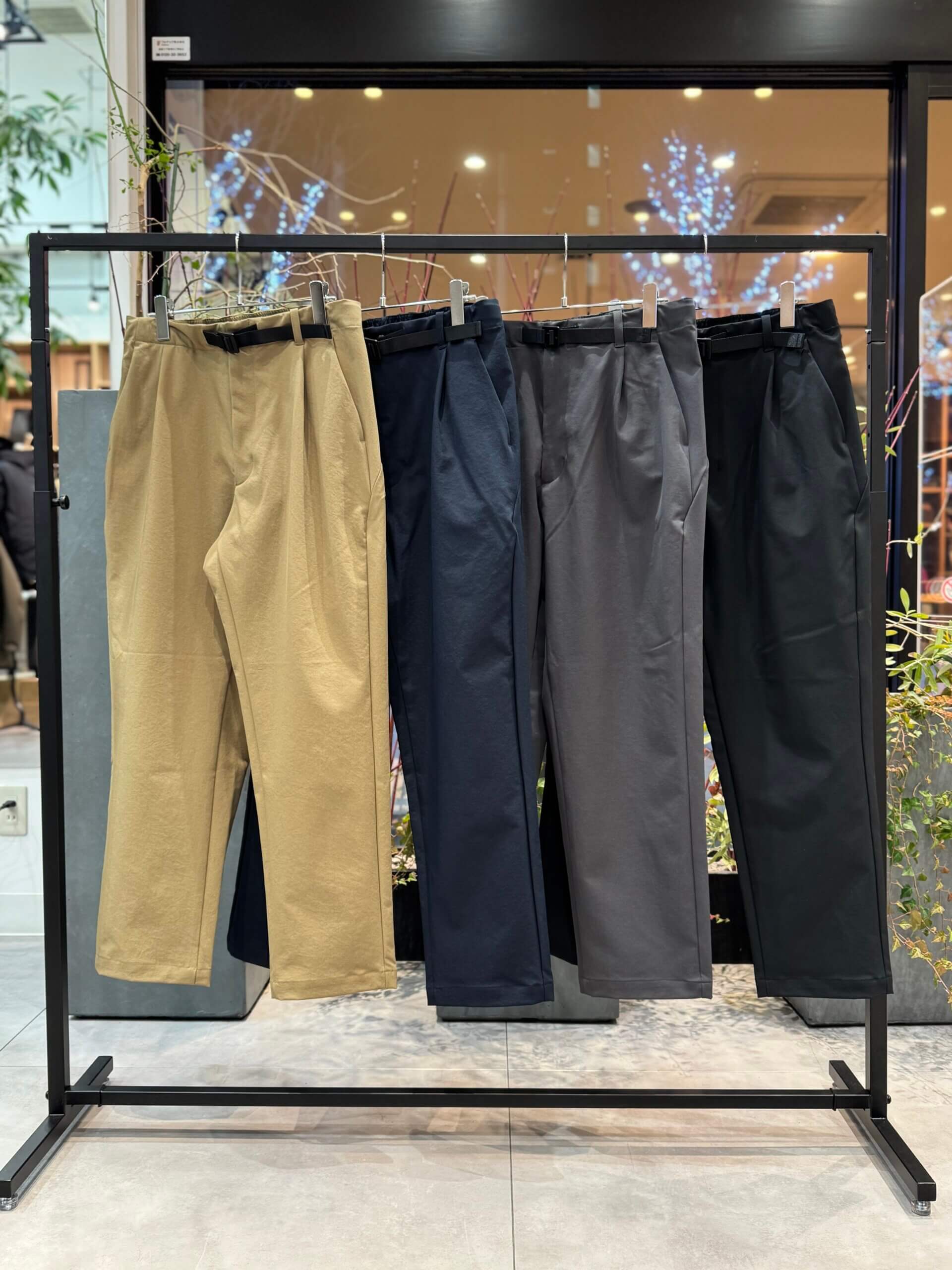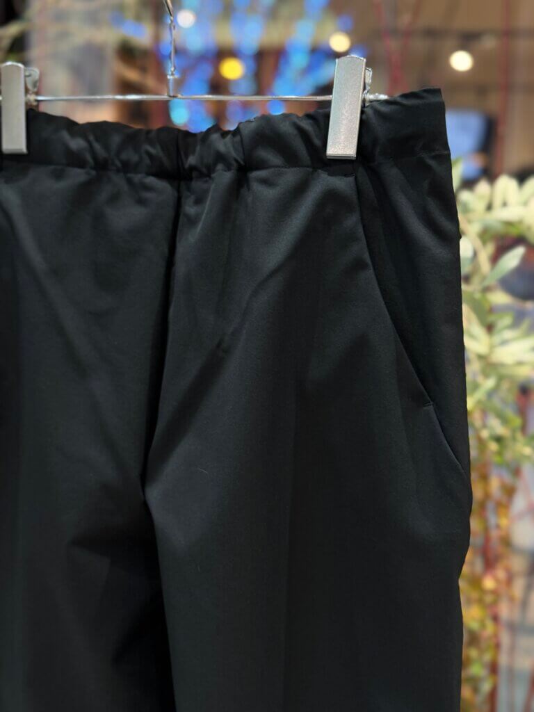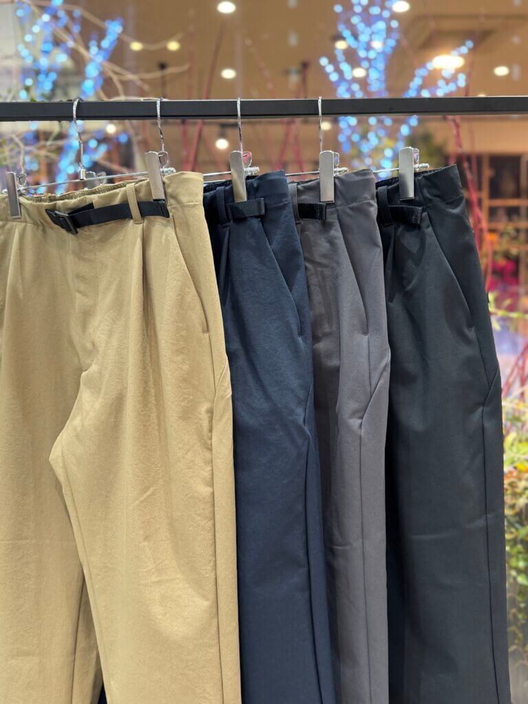 腰まわりはタックが入り、ややゆったりと仕上げられ、裾にかけてテーパードしたこだわりのシルエットと、快適な穿き心地が特長です。