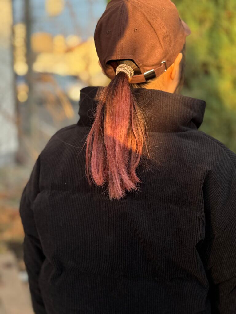 ゆったりとした身幅のボックスシルエットのアイテムですが、クロップド丈に設計されているので、すっきりとした印象です。